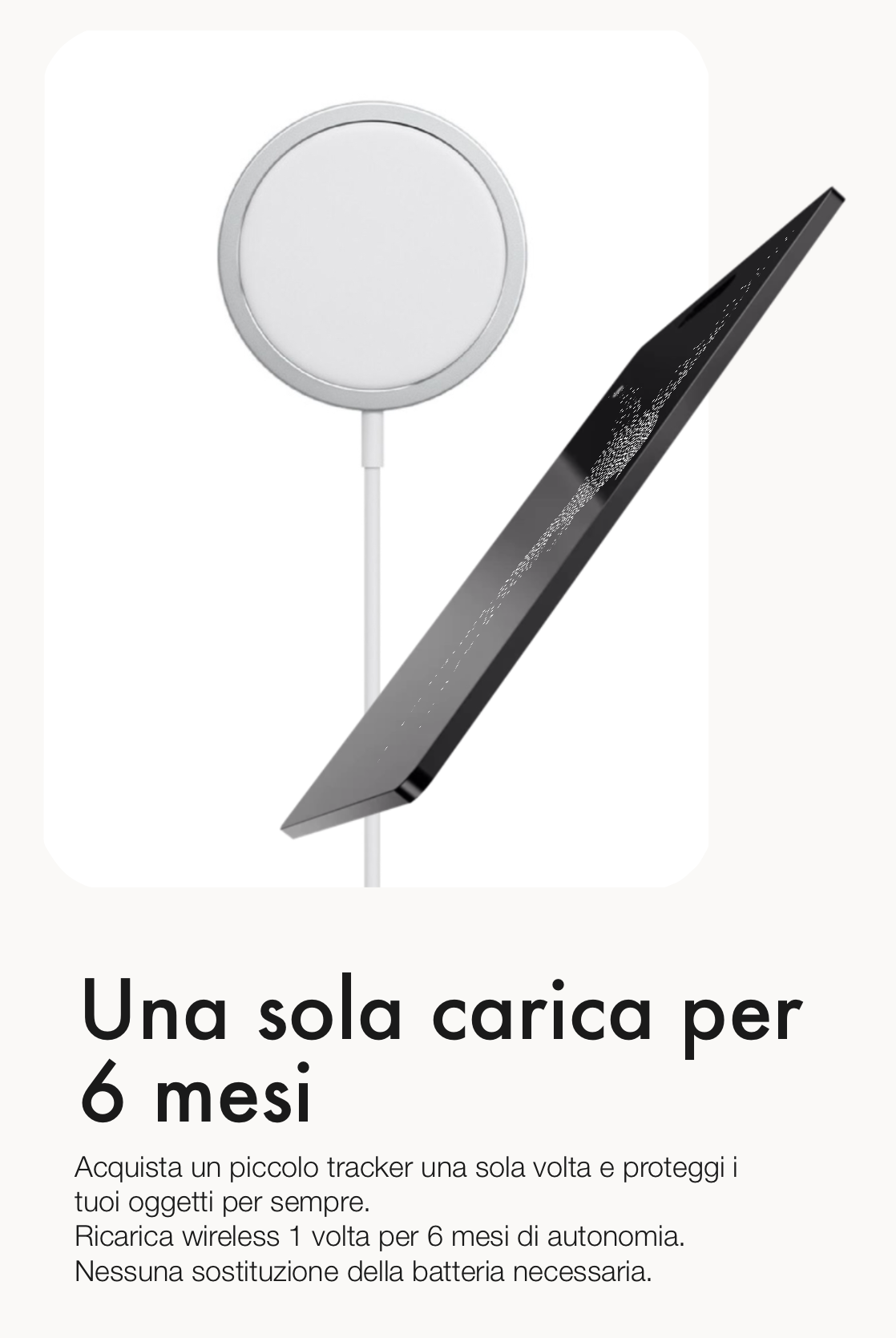 Una card tracker evoluta, sottile e compatta come una carta di credito, pensata per chi utilizza dispositivi Apple e desidera monitorare i propri oggetti in qualsiasi momento tramite l'app Find My Apple. Costruita con materiali durevoli e resistenti all’acqua, integra una batteria wireless ricaricabile con autonomia di fino a 1 anno in standby o 6 mesi di utilizzo continuo, garantendo una durata illimitata nel tempo. Un accessorio essenziale per chi vuole proteggere i propri oggetti.