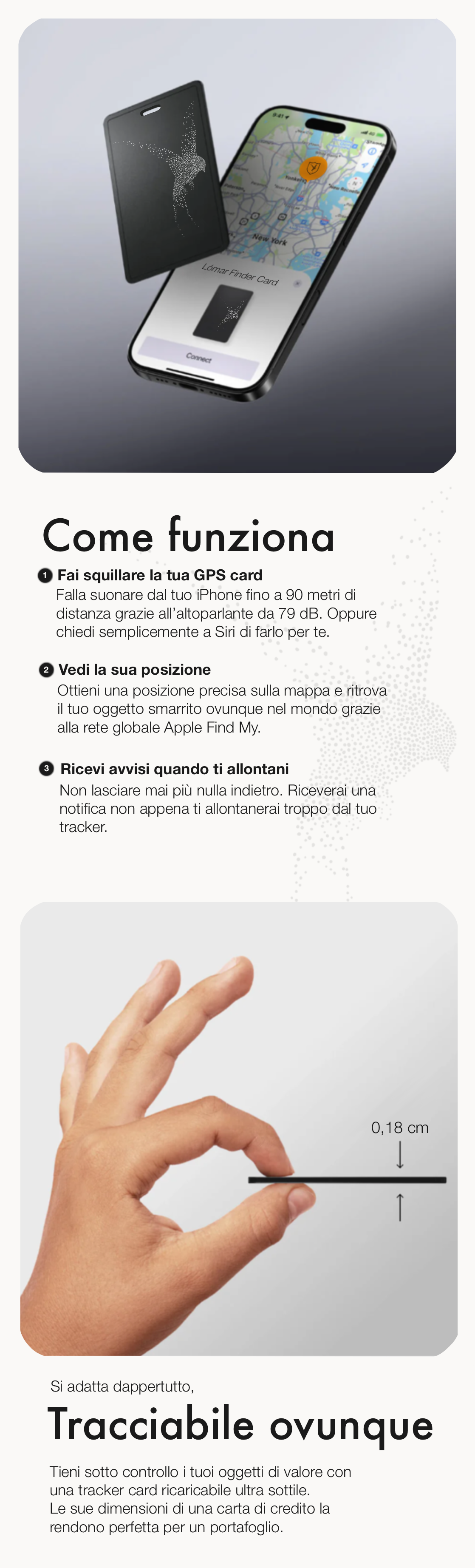 Compatibilità: Dispositivo compatibile con Apple Find My, per localizzare in tempo reale portafoglio, chiavi o altri oggetti.